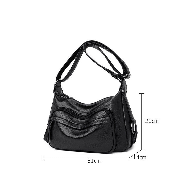 This large-capacity shoulder handbag is crafted from high-quality soft PU leather with a solid color finish and a horizontal square silhouette. Designed for daily convenience, it features multiple internal compartments including a zipper pocket, phone pocket, document pouch, and a sandwich zipper section—ideal for organizing all your essentials. The polyester-lined interior, secure zipper closure, and soft lifting handle make it both practical and comfortable. Popular for its clean stitching and versatile look, this bag is perfect for work, travel, or casual outings.