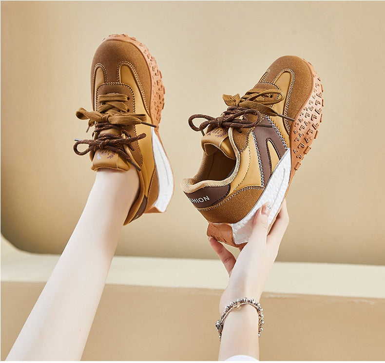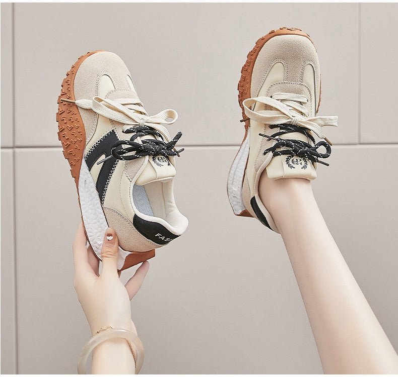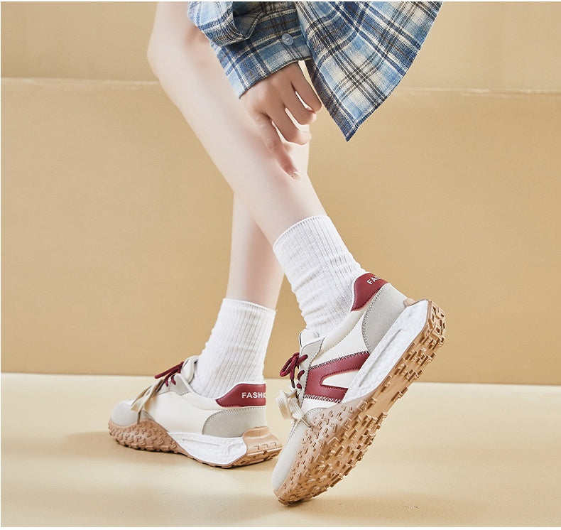 Take your strides to the next level with these stylish women’s platform wedge sneakers. Designed for long-distance running and casual wear, they feature a comfortable mid-heel and breathable PU lining to keep your feet supported all day long.